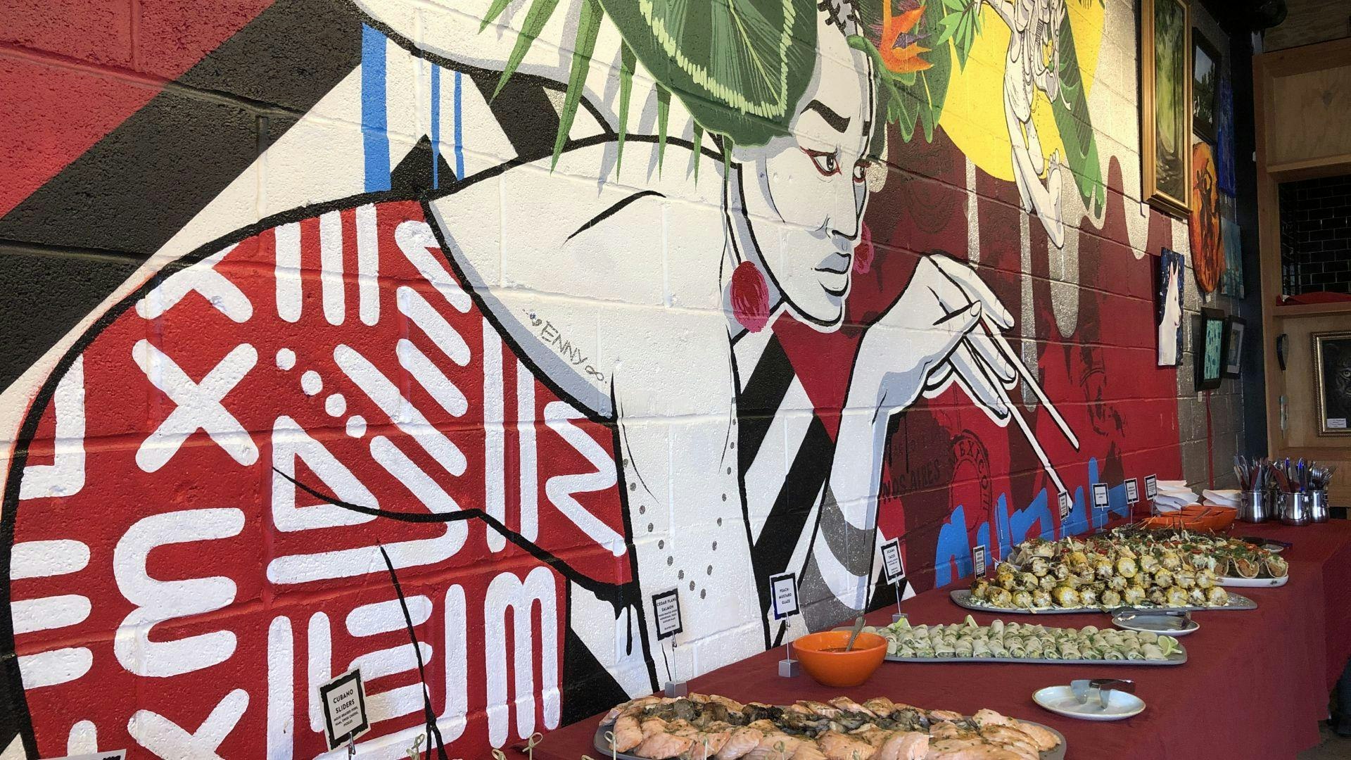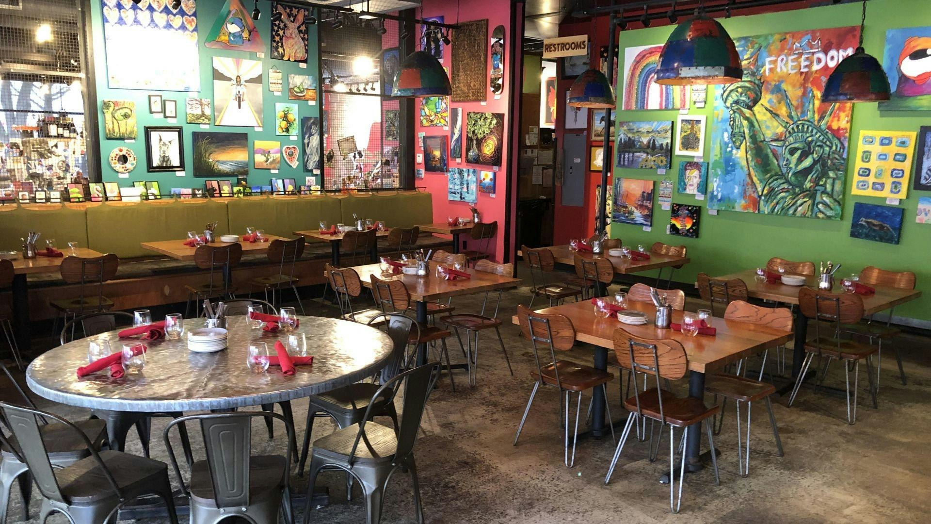 An exciting art-themed restaurant & event venue in Shirlington Village, Palette 22 features a small plates menu, perfect for your group to revel in conversation and good company while sharing a variety of tantalizing global cuisine. Delight in colorful hand-crafted cocktails while enjoying an array of vibrant artwork throughout the space. Local artists hone their craft at nearby workstations providing an unparalleled backdrop for your visit!