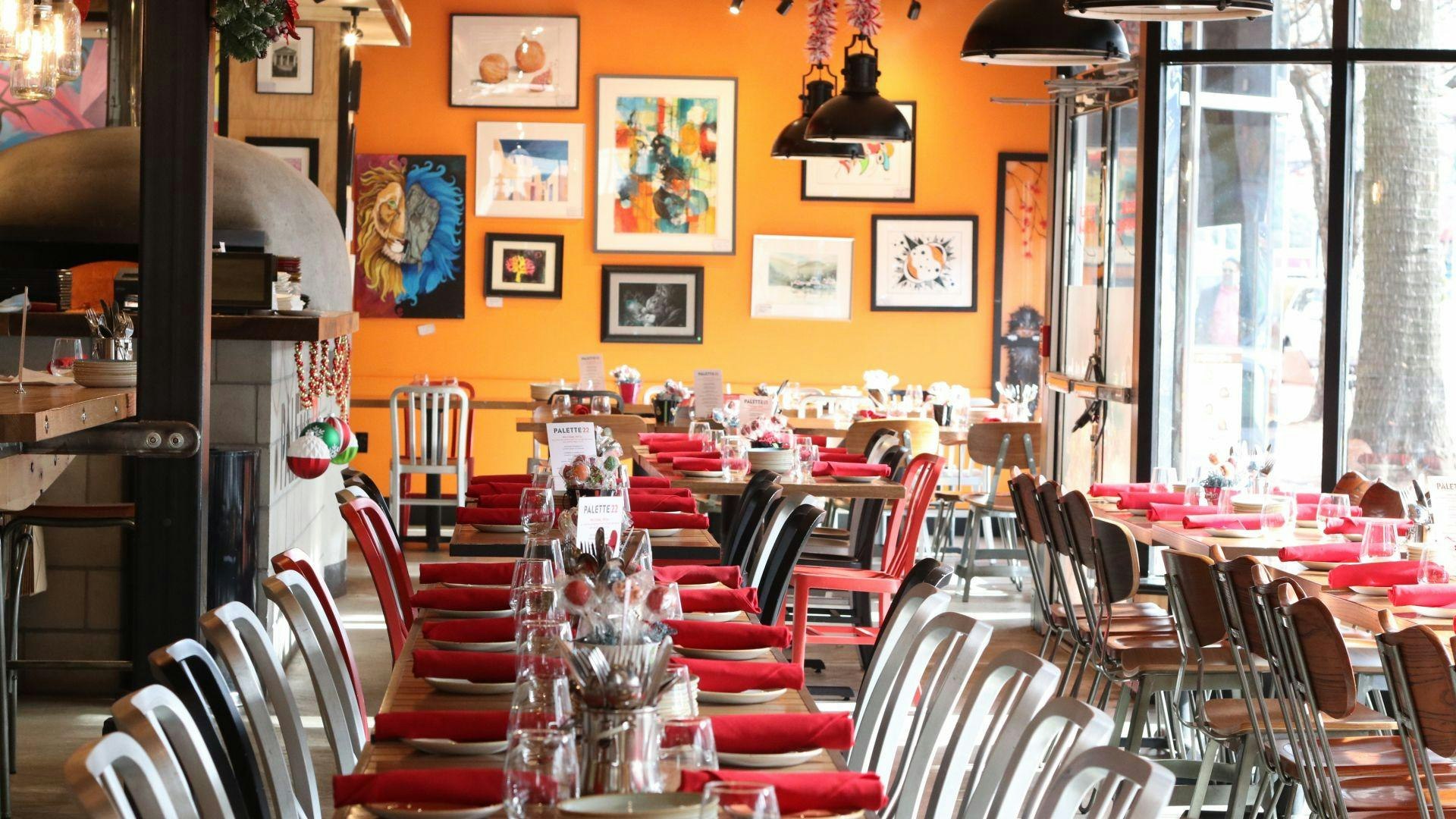 Palette 22 also features a full bar, offering signature red and white Sangria by the glass or the pitcher; unique, hand-crafted artisanal cocktails; an extensive wine list of international varietals; and craft and small-batch beers on tap.