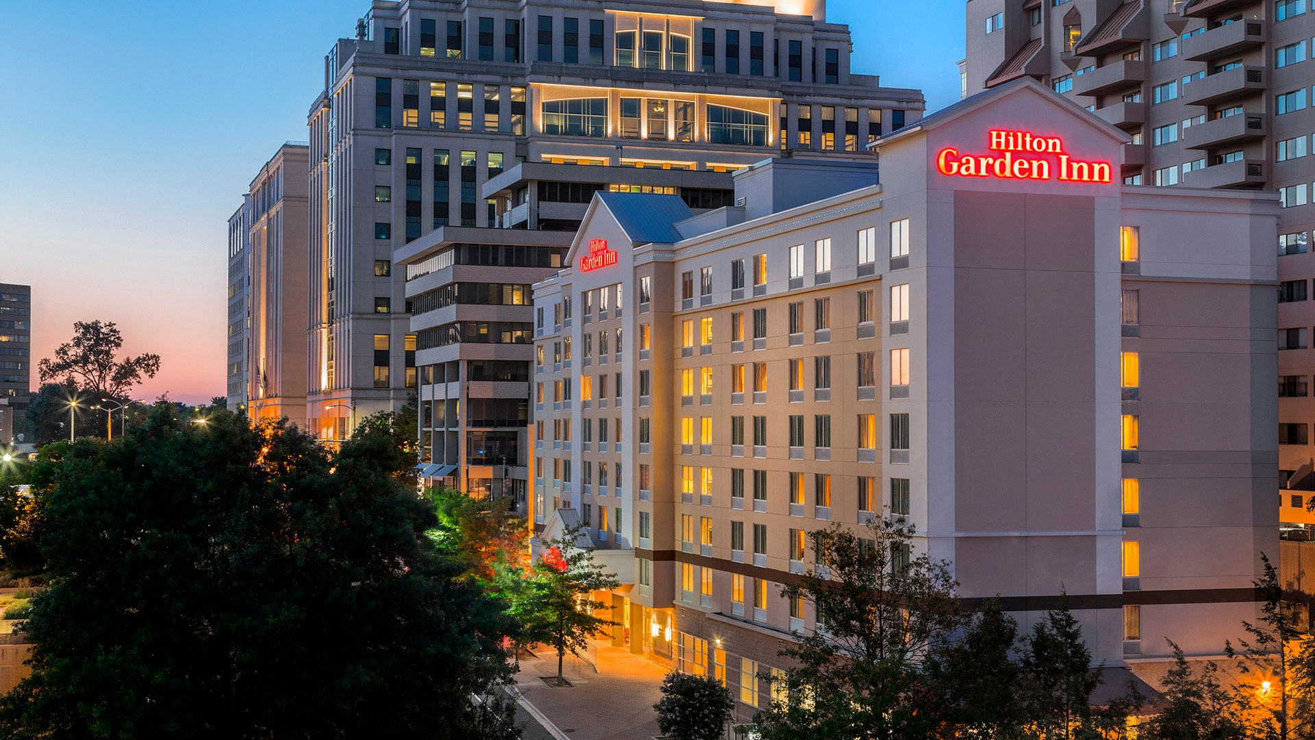 The Hilton Garden Inn Arlington /Courthouse Plaza hotel is near the Metro Station and close to major Washington, DC attractions. Select our hotel, which offers guest rooms, junior suites, and accessible rooms — all with either two queen- or one king-sized bed options. Each guest room features a large work desk, complimentary WiFi, a refrigerator, microwave, chair with ottoman and a 49-inch LCD HDTV.
