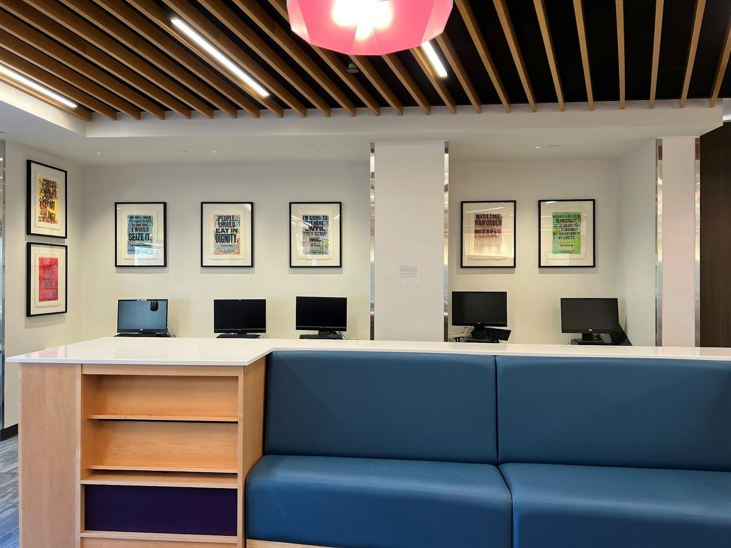 From 2019 to 2022, Arlington Arts visiting artist Amos Paul Kennedy, Jr. worked to bring awareness to Arlington’s civil rights history. Mr. Kennedy made seven letter pressed cards to honor the 60th anniversary of the seven lunch counter sit-ins that took place in Arlington between June 9-22, 1960. The sit-ins were peaceful protests that challenged widespread segregation policies. In 2021, to pay tribute to this history, Arlington Arts placed a stand at many of the original sit-in locations where commemorative letter pressed cards could be collected.